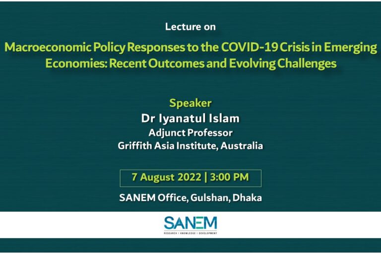 Previous Events Lecture on Macroeconomic policy responses to the COVID-19 crisis in emerging economies: recent outcomes and evolving challenges SANEM will organize a lecture by Professor Iyanatul Islam to explore emerging economies’ macroeconomic policy responses to the COVID-19 pandemic, its recent outcomes and evolving challenges. The lecture will be moderated by Dr Sayema Haque Bidisha, Professor,…